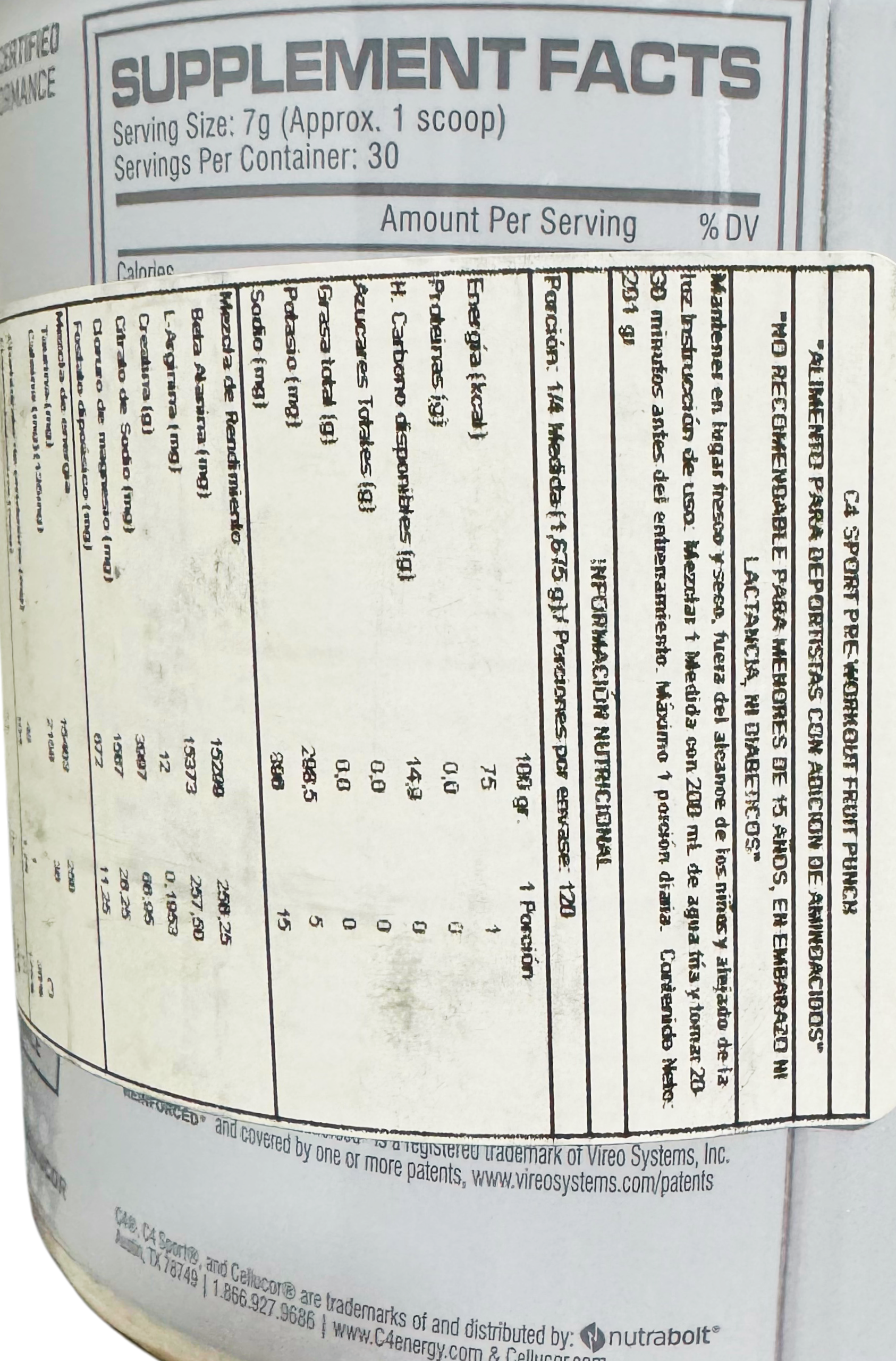 El C4 Sport Pre-Workout es un preentreno equilibrado y seguro, diseñado para quienes buscan más energía, mejor rendimiento y mayor resistencia muscular sin efectos excesivos.